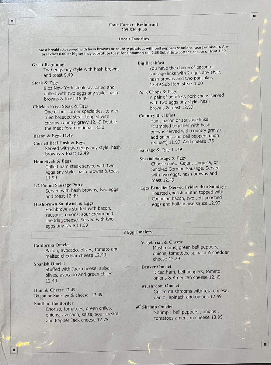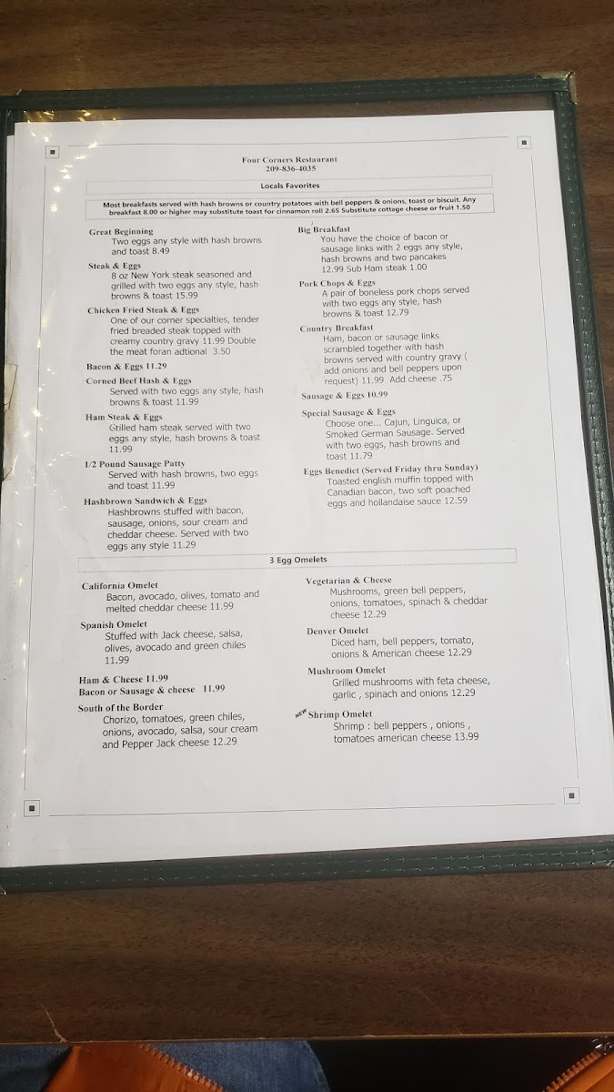 Welcome to Four Corners Restaurant, a charming American diner located at 7509 W Linne Rd in Tracy, California. Whether you’re a local resident or just passing through, this delightful eatery is a must-visit for anyone craving hearty, home-cooked meals in a warm, inviting atmosphere.