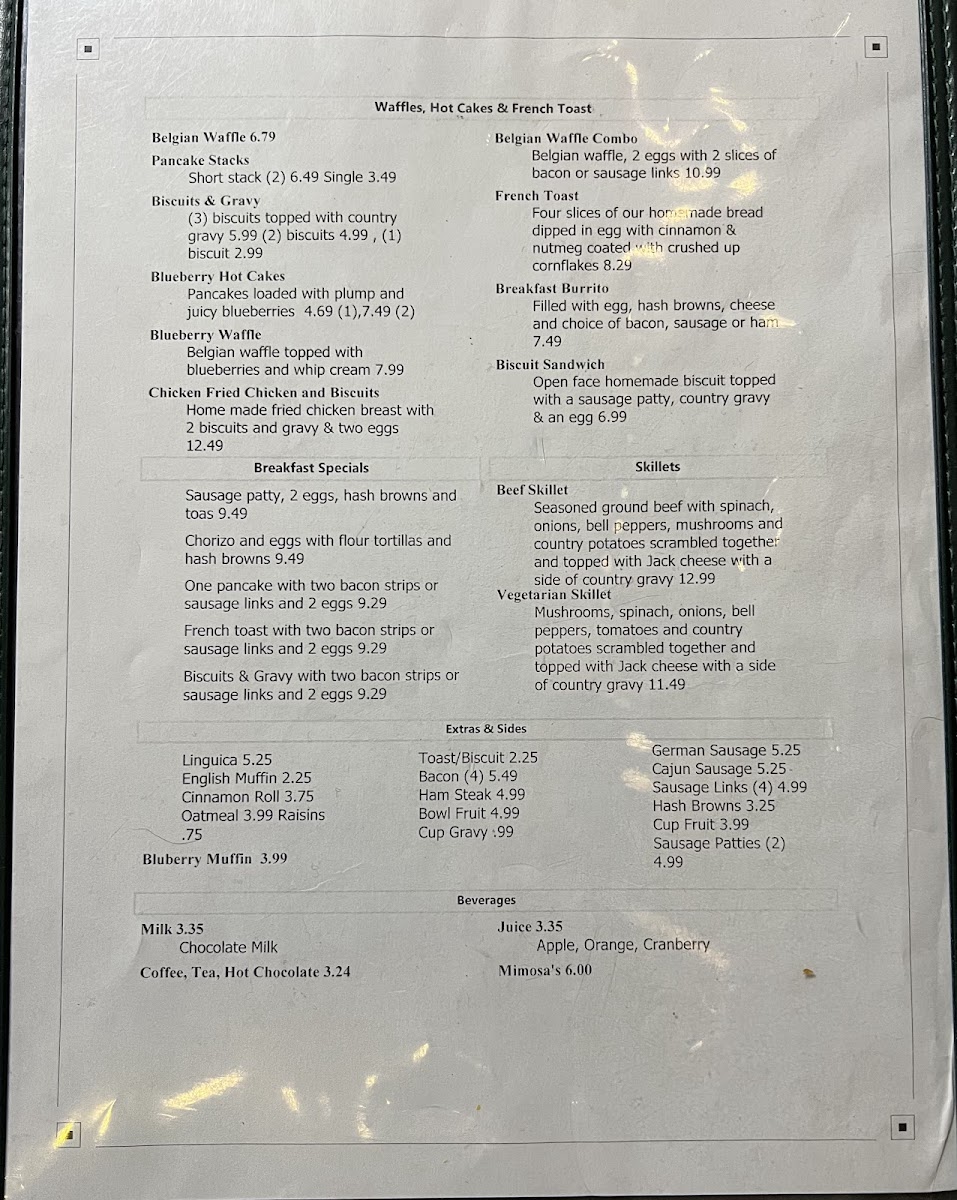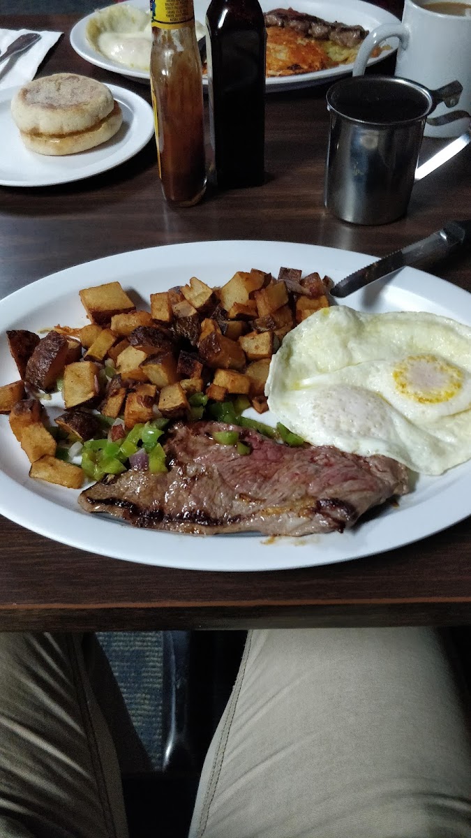 The restaurant specializes in traditional American cuisine, with an emphasis on breakfast favorites that will make your taste buds sing. The menu features a range of delicious options, including the standout Steak & Eggs for $16.49, or the famously comforting Chicken Fried Steak & Eggs priced at just $12.49. If you're after a classic morning feast, the Big Breakfast ($13.49) is sure to leave you satisfied, offering an impressive array of tasty breakfast staples. And, let’s not forget about the homemade cinnamon rolls, lauded by customers for their delightful sweetness—the perfect way to kick off your day!